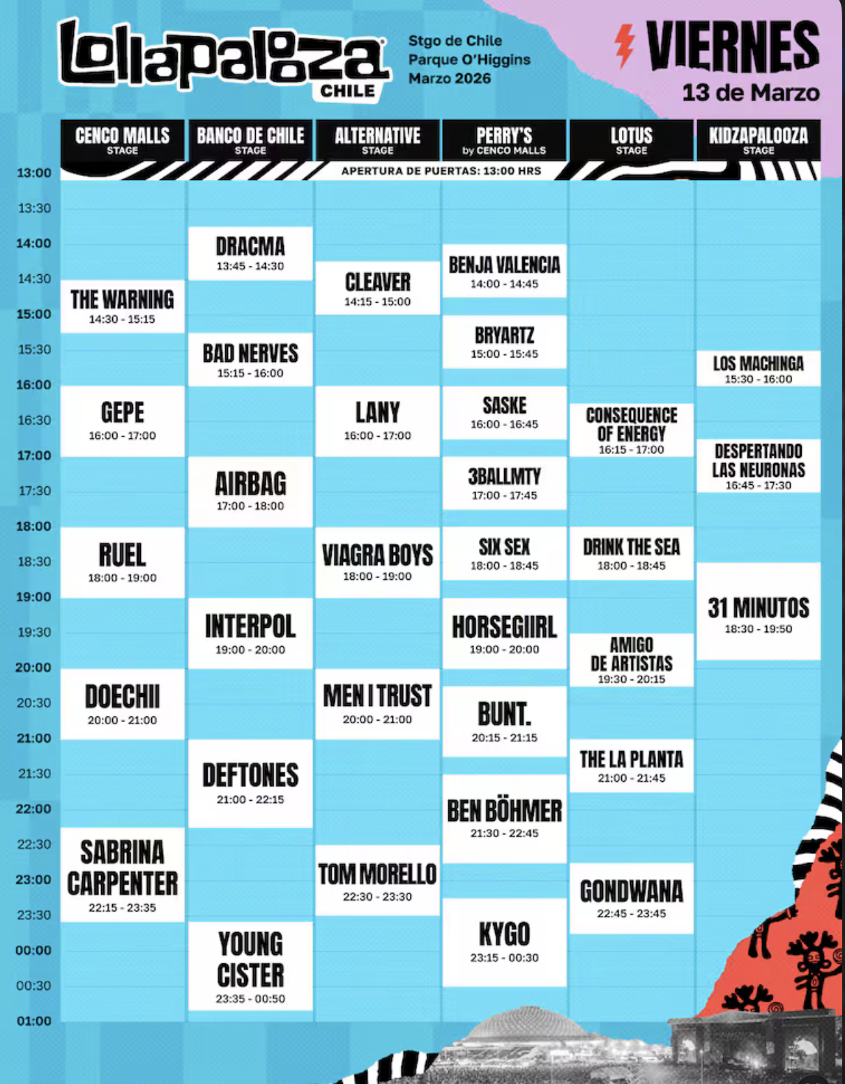 La primera jornada promete ser masiva, con miles de fanáticos congregados para presenciar el debut de Sabrina Carpenter y el potente regreso de Deftones, en un cartel que también destaca a Interpol y el fenómeno nacional Young Cister.